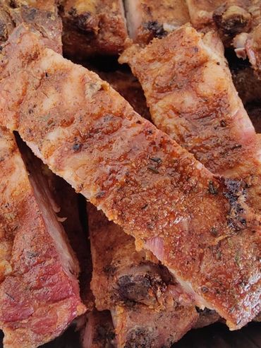 Pork, Brisket, Ribs and Chicken are seasoned with our very own bbq rub and smoked to perfection in one of our 2 professional smokers.