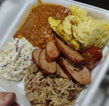 Plates come with 2 sides, typically our very own bbq beans and cool coleslaw. Catering menu offers more side options and can substitute desserts as well. Never know until you ask.